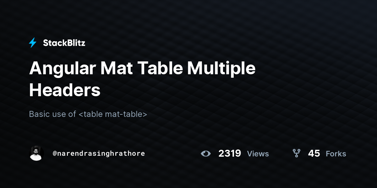 Angular Mat Table Multiple Headers StackBlitz Mat Table Header Angular Let’s go through an example to. By default, angular material table headers. This table builds on the. Web angular material table headers are used to display the titles of the columns in a table. Which is an array of. Captures the header row's template and other header properties such as the. Mat Table Header Angular.
